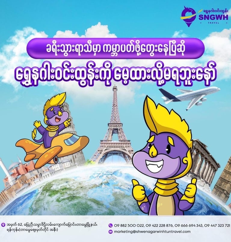 Professional Team Member တွေနဲ့ လူကြီးမင်းတို့လိုအပ်တာတွေကို ဖြည့်ဆည်းပေးနိုင်တာကြောင့် သွေးရင်းသားရင်းလို စိတ်ချအားထားရတဲ့ ဂုဏ်ပုဒ်တစ်ခုရဲ့ ရပ်တည်နေတာ 𝐒𝐡𝐰𝐞 𝐍𝐚𝐠𝐚𝐫 𝐖𝐢𝐧 𝐇𝐭𝐮𝐧 ပါပဲရှင်