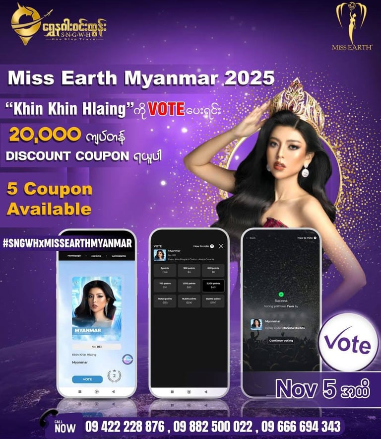 ✅ Comment your vote screenshot + order code with #SNGWHxMISSEARTHMYANMAR